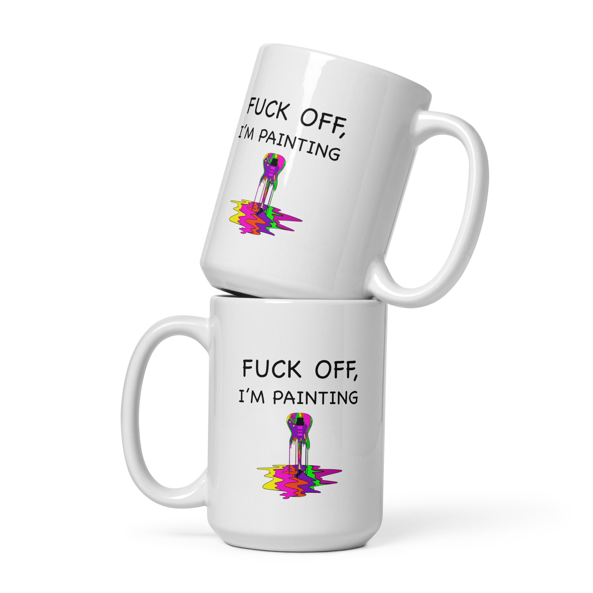 Whether you’re drinking your morning coffee, evening tea, or slingin paint in the studio—this mug’s sends an apprropriate message to anyone trying to disturb your flow!